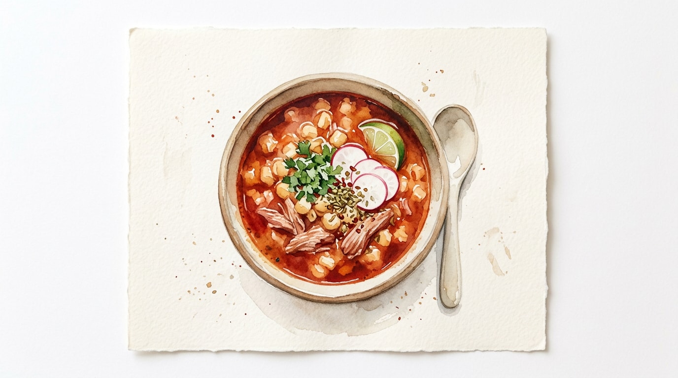 Ladle the hot pozole into wide, deep bowls. Serve immediately alongside individual plates of shredded cabbage, sliced radishes, diced white onion, and lime wedges for guests to customize their bowls.