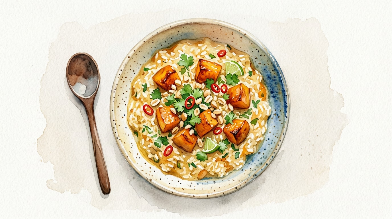 - Using a high-quality, full-fat canned coconut milk is essential to mimic the rich creaminess usually provided by butter and parmesan cheese in a traditional risotto.