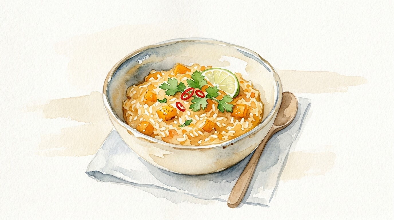 Discard the makrut lime leaves. Stir in the fresh lime juice and season generously with salt to taste. Vigorously stir the risotto for 30 seconds to agitate the starches and create a luxuriously creamy emulsion before serving immediately.