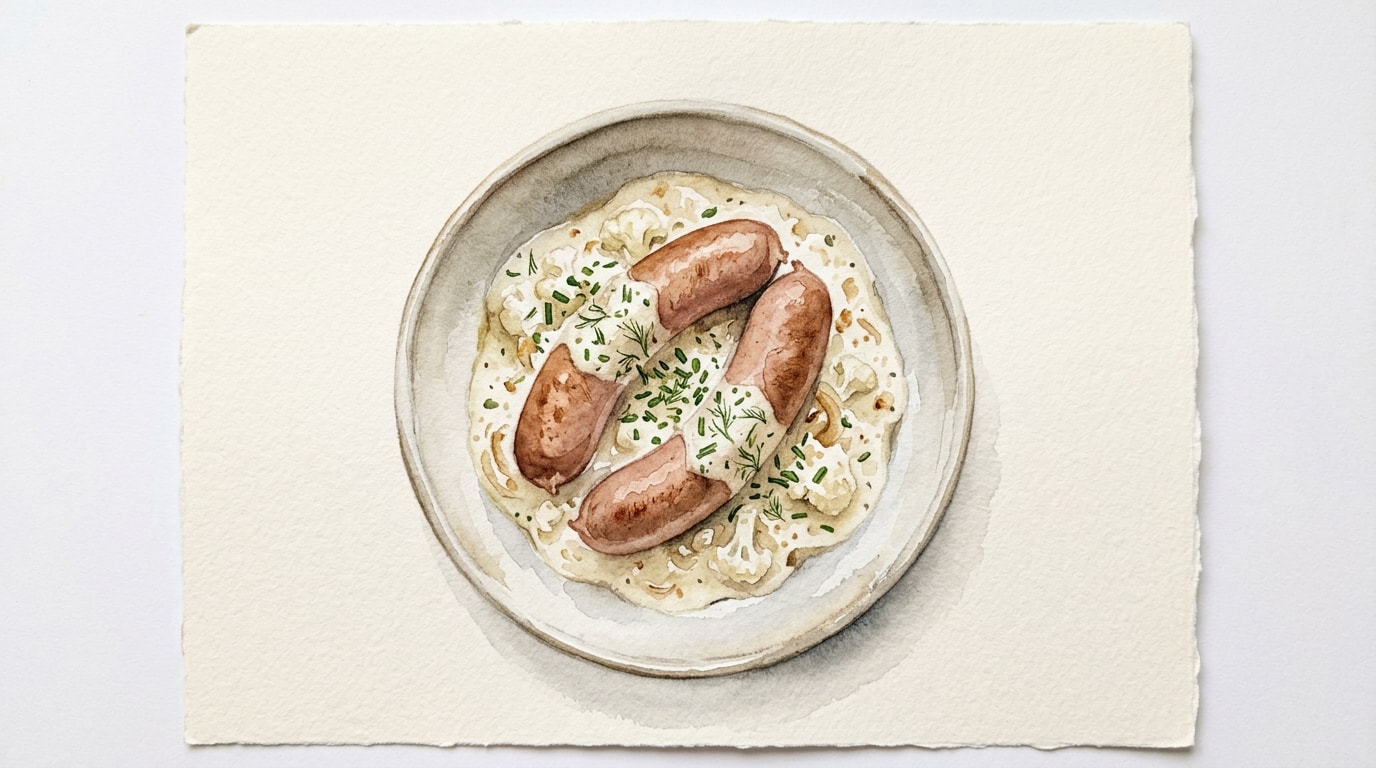 Carefully fold the drained cauliflower florets into the sauce around the sausages, gently turning them until completely coated and warmed through. Cook for an additional 2 minutes.