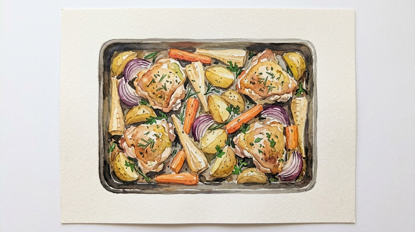- Leaving the chicken bone-in is crucial for one-pot recipes; the bone insulates the meat, preventing it from drying out during the long roast required for the vegetables.