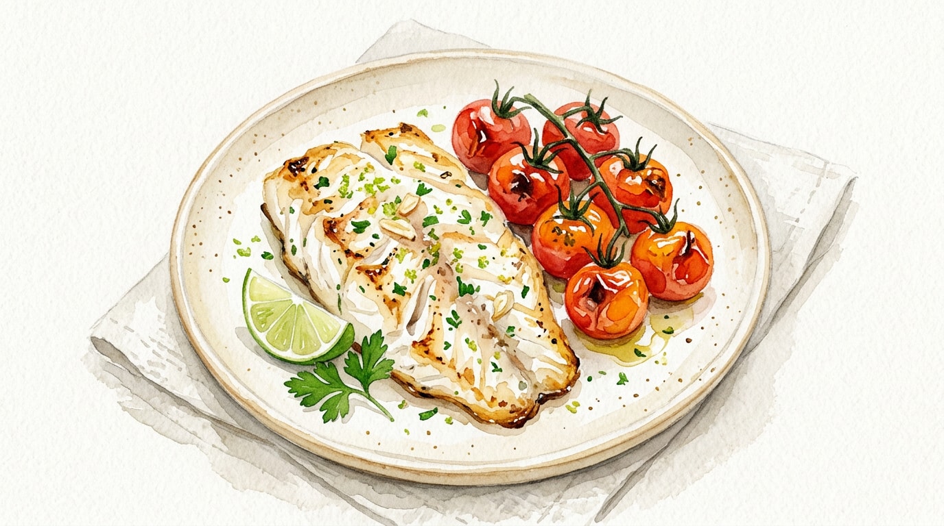 Remove the baking sheet from the oven, let the fish rest for 2 minutes to settle the juices, and serve immediately alongside the blistered tomatoes.