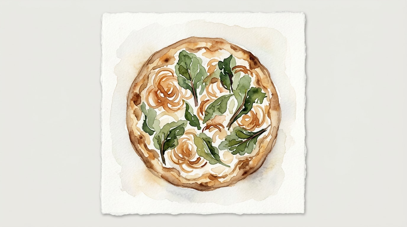 Brush the stretched dough lightly with the remaining olive oil. Distribute the onion and Swiss chard mixture evenly across the base. Spoon small dollops of ricotta cheese over the greens, then sprinkle evenly with the grated vegetarian parmesan.