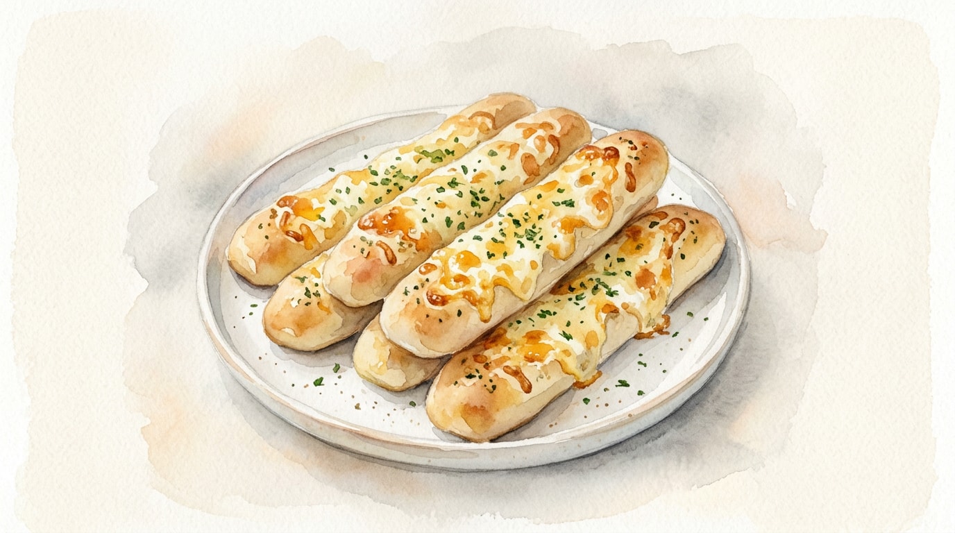 Remove from the oven and allow to cool for 3 to 5 minutes on the baking sheet. Use a pizza cutter or sharp knife to slice the rectangle into 12 even sticks. Serve warm.