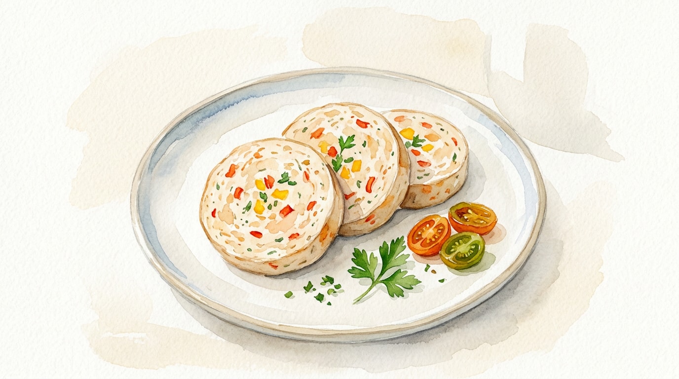 Transfer the chicken emulsion to a mixing bowl. Manually fold in the completely cooled sautéed bell pepper mixture until evenly distributed.