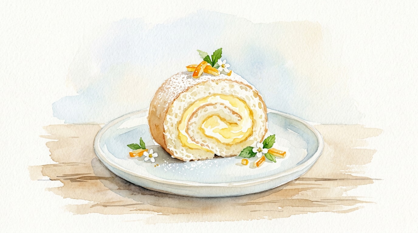 Once the cake is fully cooled, carefully unroll it on the counter. Spread the citrus yogurt filling evenly over the surface of the sponge, leaving a two centimeter border around all edges to prevent the filling from squeezing out.