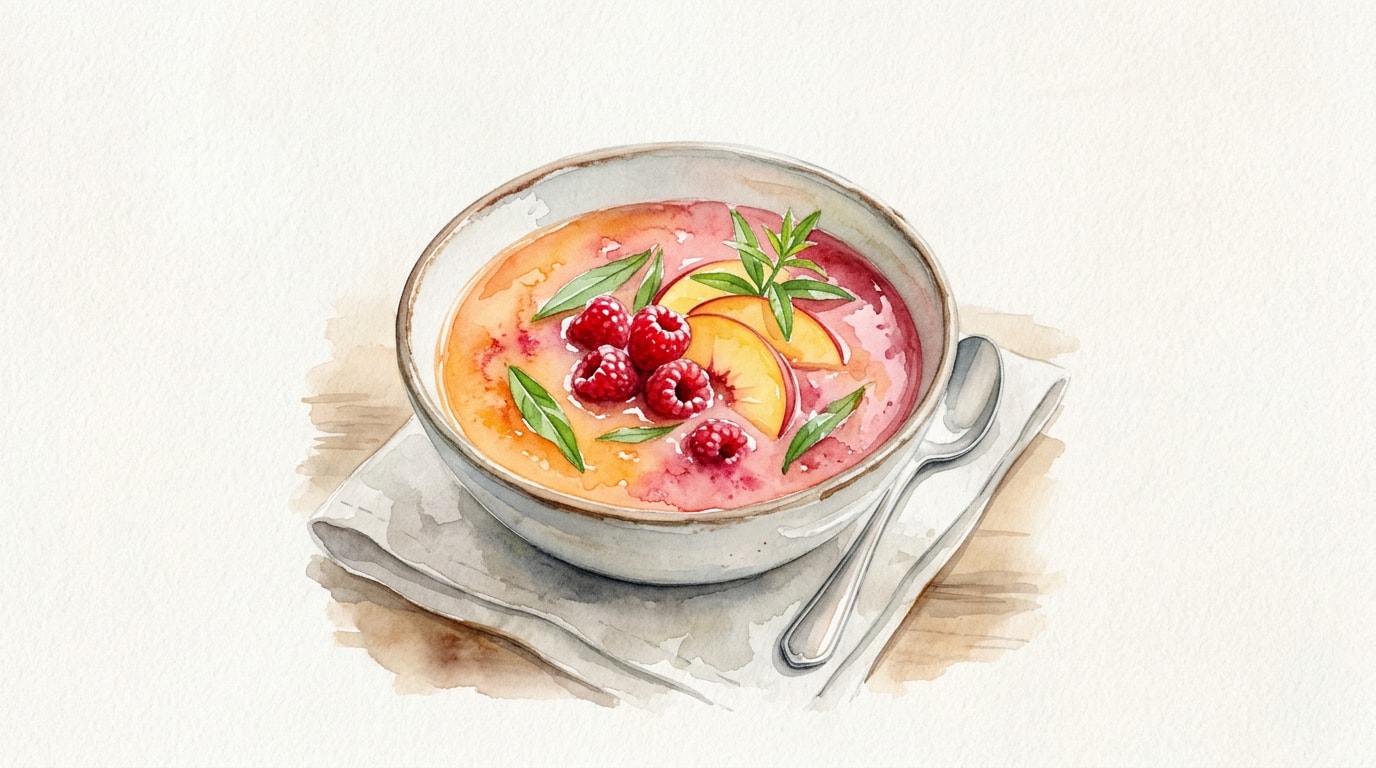 - This soup benefits incredibly from time. Making it a day in advance allows the raspberries to slowly bleed their juices into the peach base, creating a stunning sunset effect in the bowl.
