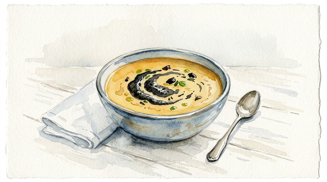 - The diced red tomato garnish is crucial not just for a textural pop, but for a striking visual contrast against the vibrant yellow canvas of the soup.