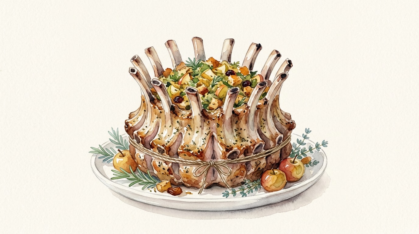 - The center cavity of the crown is excellent for holding a simple bread stuffing or roasted potatoes. If adding stuffing, add it during the final 45 minutes of roasting and verify the stuffing reaches a safe 74C/165F before serving.
