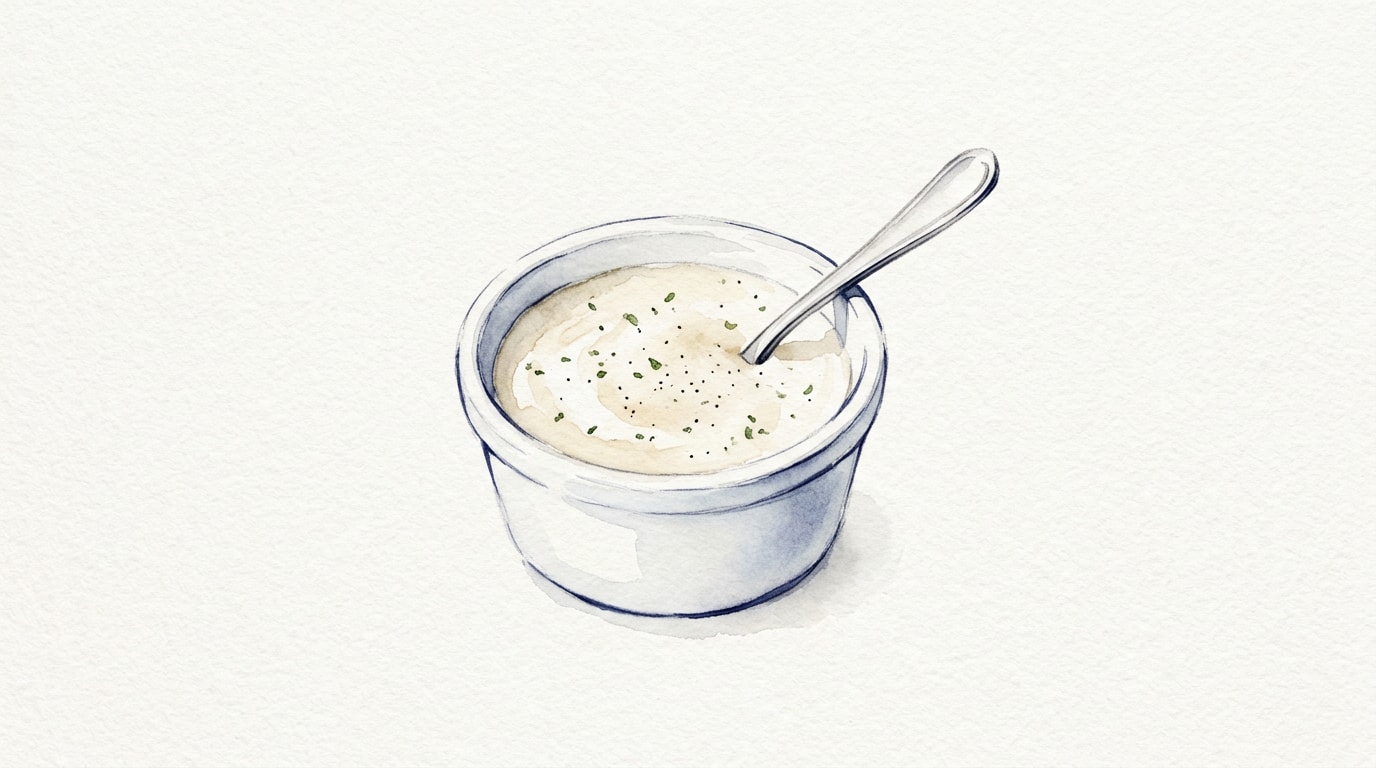 Whisk in the fine sea salt and freshly cracked black pepper, then allow the dressing to rest undisturbed for 10 minutes to let the flavors meld and the texture fully set.