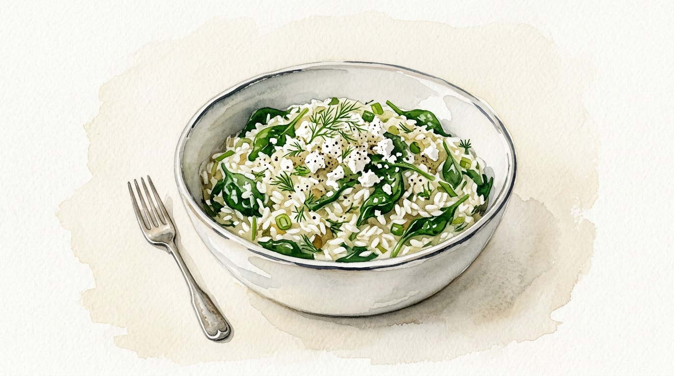 Remove the saucepan from the heat, leaving the lid on. Allow the dish to rest for 5 minutes. Remove the lid, pour in the lemon juice and optional fresh dill, and gently fluff everything together with a fork until the spinach is evenly integrated into the rice.