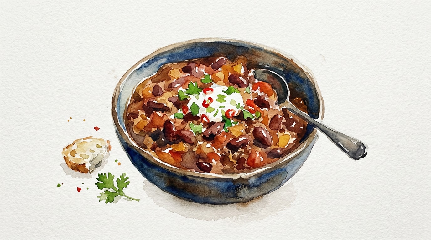 Cover the Dutch oven with the lid slightly ajar to allow some steam to escape. Simmer gently for 1 hour and 30 minutes, stirring occasionally to prevent the bottom from scorching. The chili will thicken and the flavors will meld.