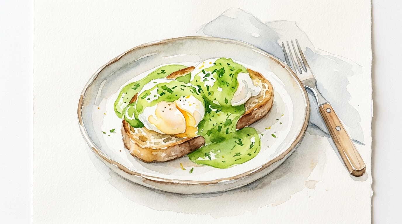 Using a slotted spoon, carefully lift the poached eggs from the water. Briefly rest the spoon on a clean paper towel to drain all excess water. Place one toasted sourdough slice on each plate, top with a poached egg, and generously nap with the warm sorrel sauce. Serve immediately.