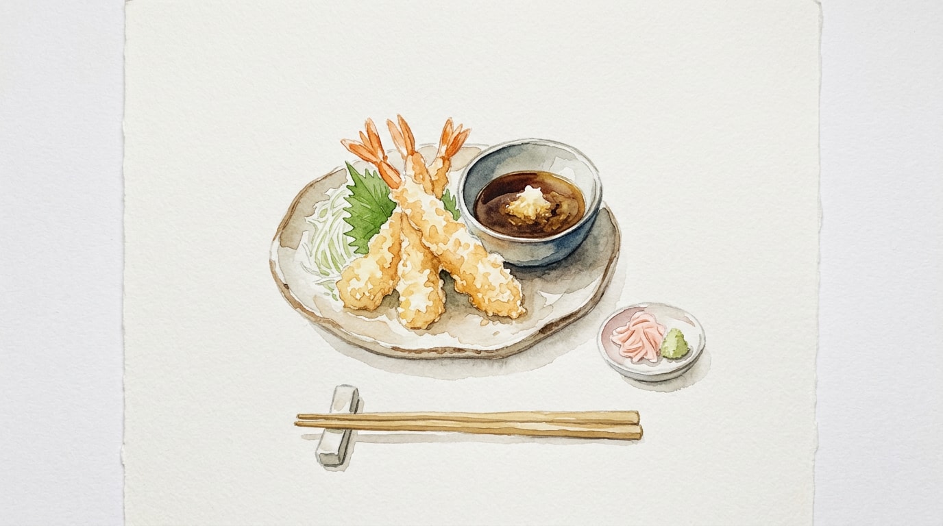 Serve the prawn tempura immediately while perfectly hot and crisp. Accompany with the warm tentsuyu dipping sauce, a small mound of grated daikon to mix into the sauce, and a side of pickled ginger to cleanse the palate between bites.