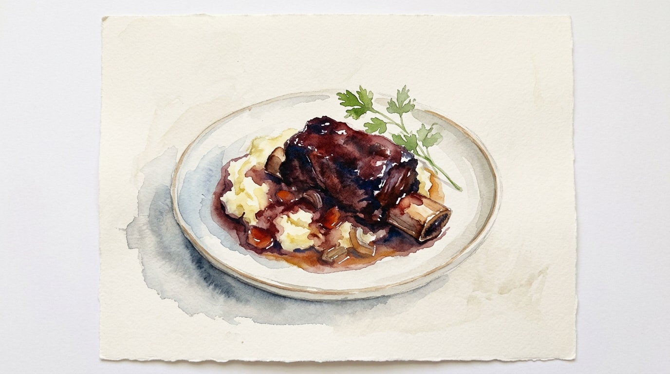 Serve the short ribs immediately, ladling the reduced red wine sauce generously over the top of the meat.