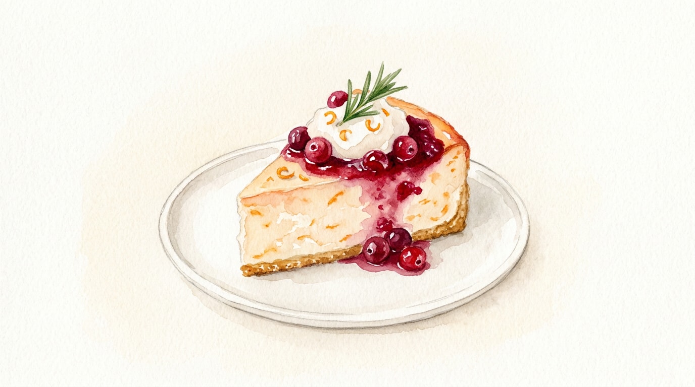 Once both components are completely chilled, spoon the cooled cranberry sauce evenly over the top of the cheesecake. Slice with a sharp knife wiped clean between cuts.