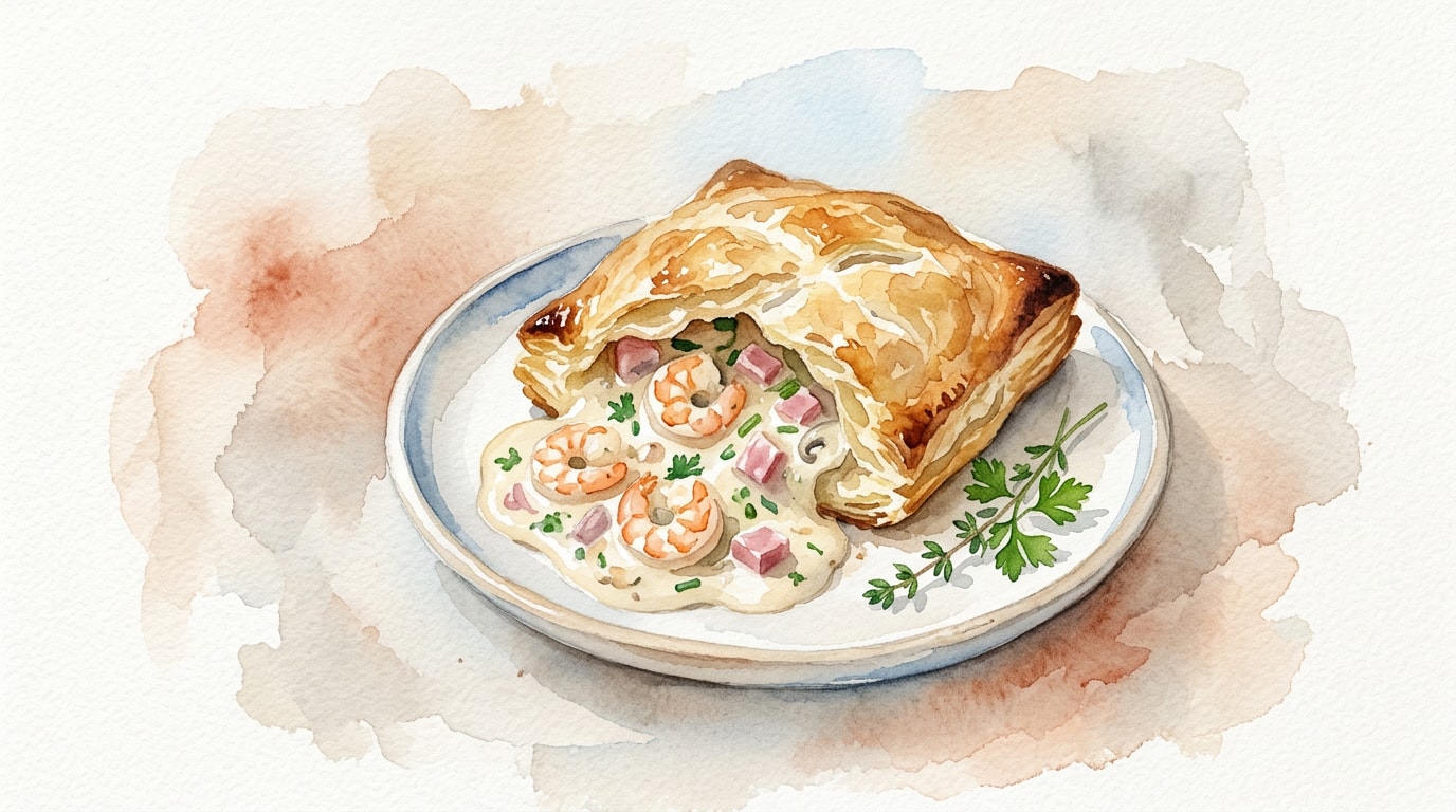 Place the hollowed hard rolls on individual serving plates. Spoon the hot creamy shrimp and ham mixture generously into the center of each roll, allowing the sauce to overflow slightly onto the plate. Serve immediately.
