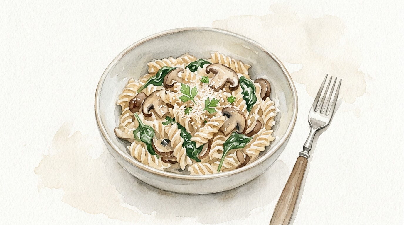 While the pasta boils, heat the olive oil and unsalted butter in a deep skillet over medium-high heat. Add the sliced mushrooms in a single layer and let them sit undisturbed for 3 minutes to develop a deep golden brown crust.