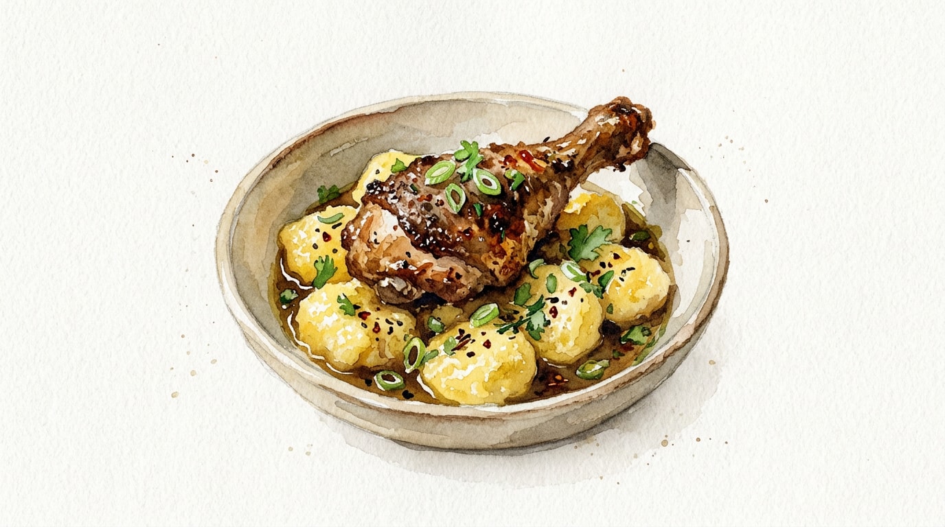 Heat the deep frying oil in a heavy-bottomed pot to 175C (350F). Carefully lower 4 to 5 dumplings at a time into the oil and fry for 5 to 6 minutes, turning occasionally, until the polenta coating is deep golden brown and the dough is cooked through.