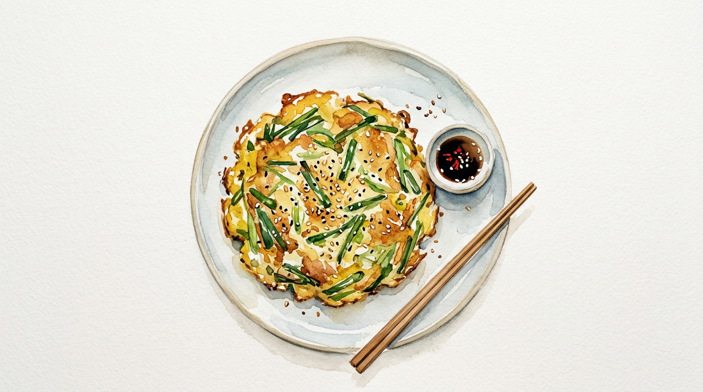 Transfer the cooked pancake to a cutting board. Repeat the cooking process with the remaining oil, batter, and sesame oil. Cut the pancakes into bite-sized squares or wedges and serve immediately with the prepared dipping sauce.