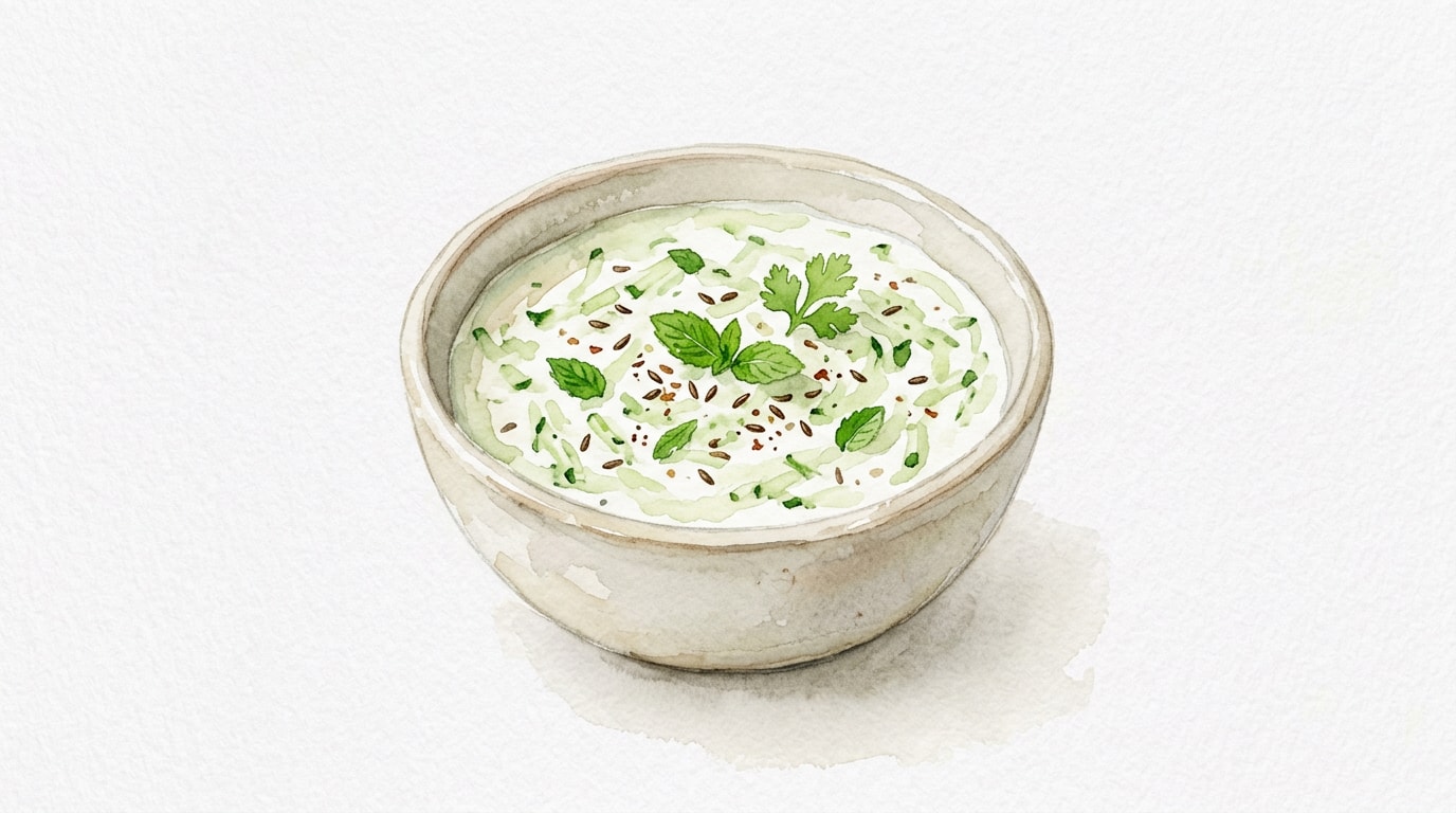 Cover the bowl and place it in the refrigerator for 15 minutes. This resting period allows the earthy cumin and bright mint oils to infuse into the yoghurt.