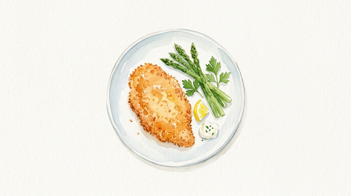 Carefully lay the breaded chicken cutlets away from you into the hot fat, working in batches to avoid overcrowding the skillet. Fry for 3 to 4 minutes per side, turning carefully with tongs, until the crust is deep golden brown and the internal temperature of the chicken reaches 74°C/165°F.
