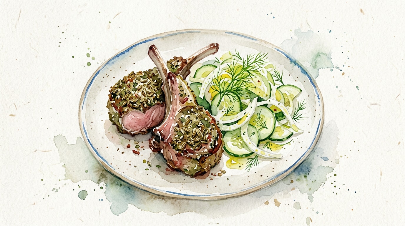 Serve the rested lamb chops alongside a generous pile of the dressed cucumber and fennel salad. Garnish with any reserved fennel fronds.