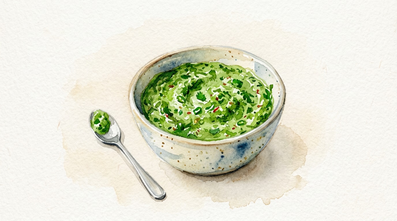 - To achieve the most vibrant green color, add a small ice cube to the blender when pureeing the herbs. The cold temperature prevents the blender friction from cooking and dulling the chlorophyll.