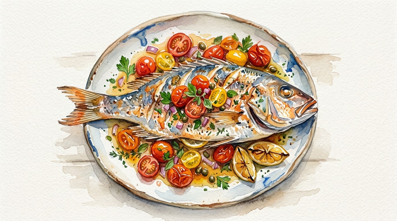 - The sharp acidity in the tomatoes and red wine vinegar acts as a palate cleanser, cutting through the richness of the olive oil and perfectly complementing the delicate, sweet flavor of the fish.