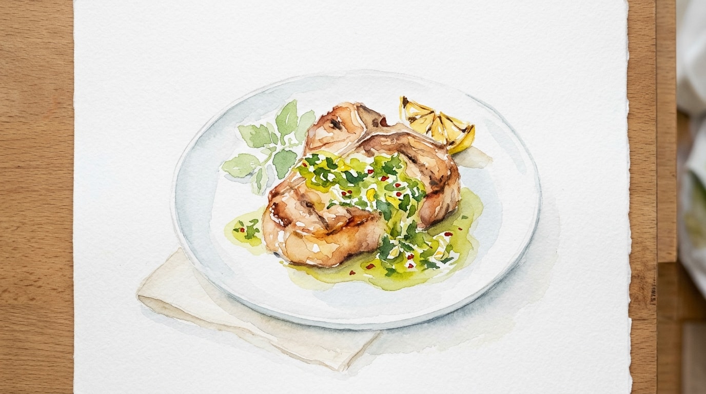 Transfer the rested chops to serving plates. Give the salmoriglio sauce a quick stir to recombine, then spoon it generously over the hot veal. Serve immediately.