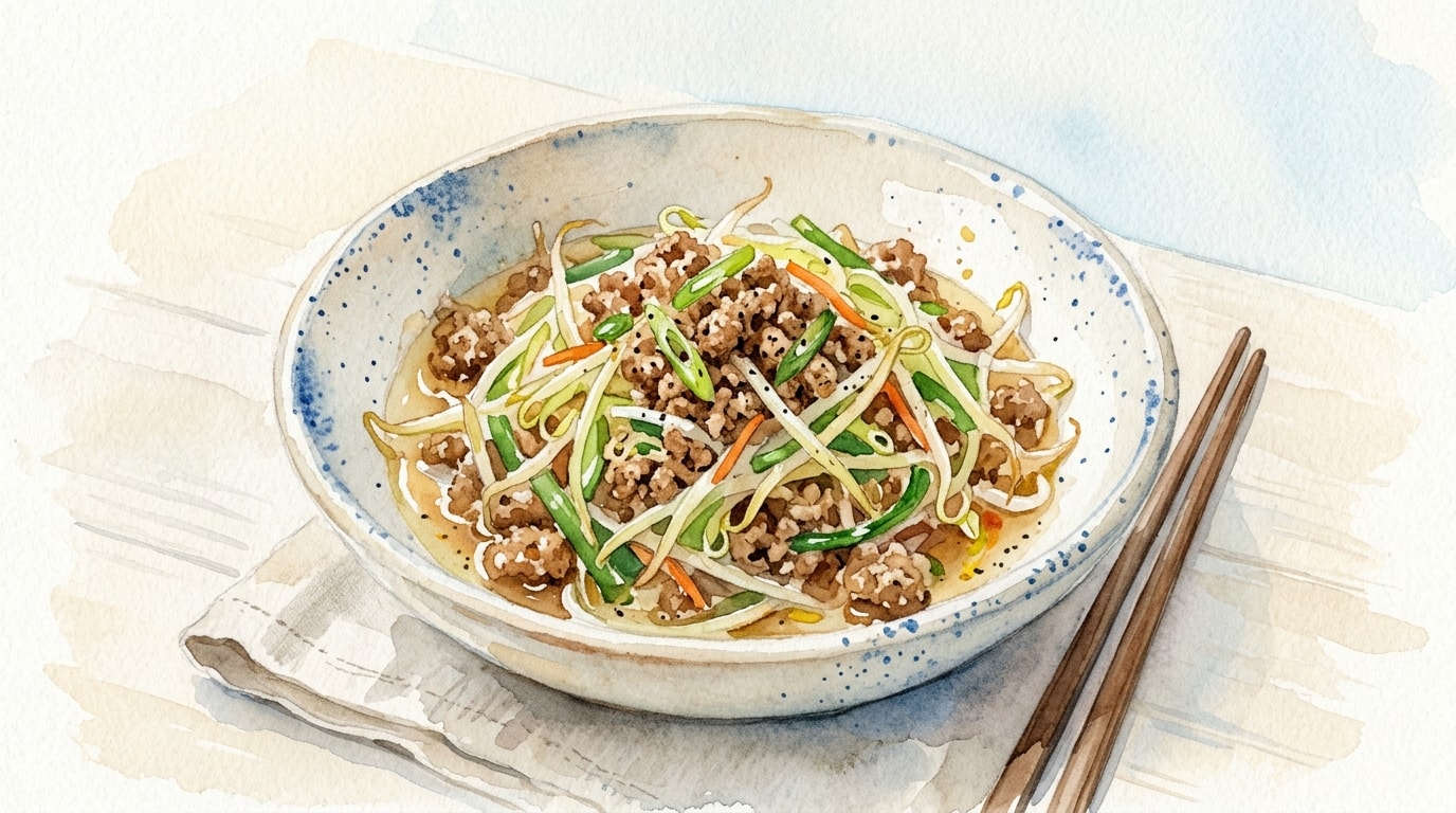 Thoroughly drain the washed mung bean sprouts and pat them dry with a clean kitchen towel. In a small mixing bowl, whisk together the light soy sauce, dark soy sauce, Shaoxing wine, sugar, and white pepper. Set aside.
