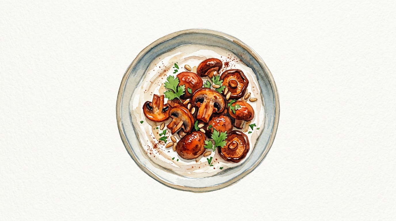 To serve, use the back of a spoon to create a wide, swooping bed of the seasoned yogurt across a serving platter. Immediately spoon the blistering hot, sticky mushrooms and onions over the cooling yogurt. Garnish with chopped parsley and serve right away.