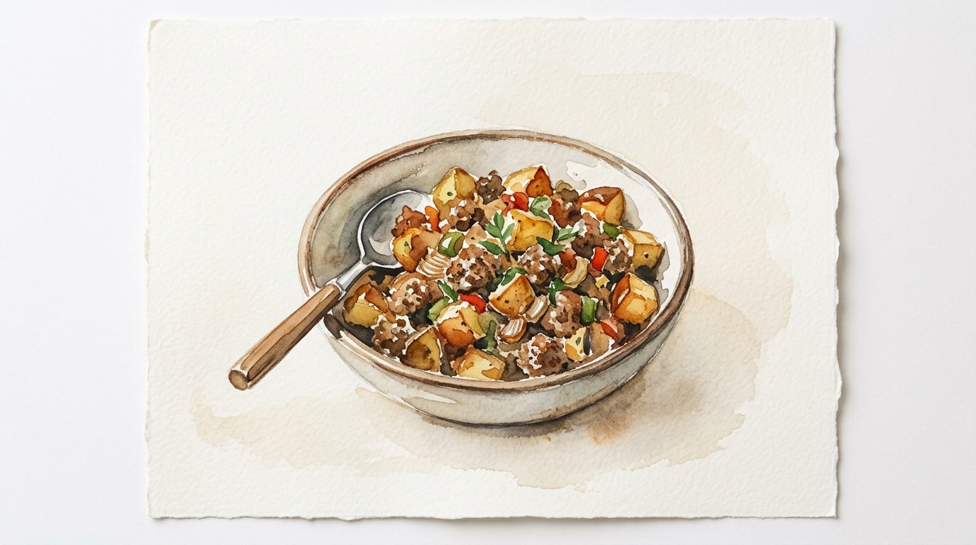- For a deeper flavor profile, let the hash sit completely undisturbed for two to three minute intervals between stirs; this builds the best crust on the potatoes and meat.
