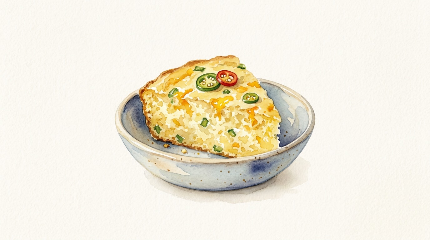 Carefully remove the hot skillet from the oven using oven mitts. Add the 10g of butter and swirl to coat the bottom and sides. Immediately pour the batter into the sizzling skillet, spread it out evenly, and scatter the reserved cheese and jalapenos over the surface.