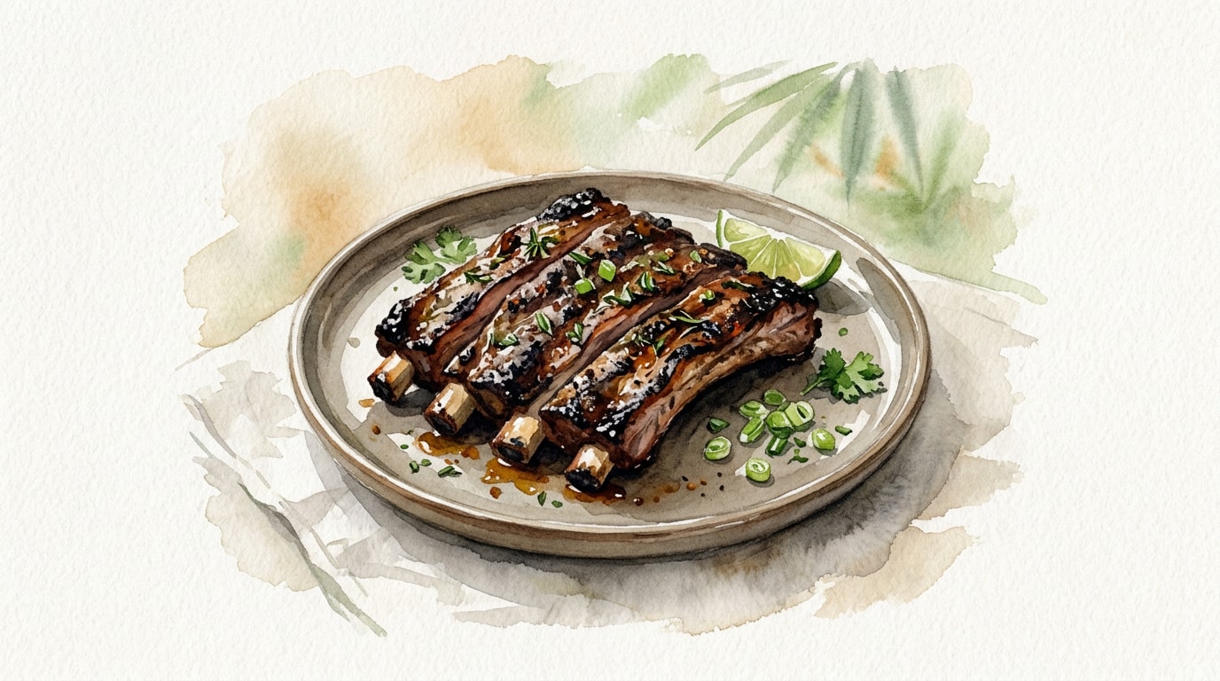Slice the ribs between the bones and serve immediately with extra lime wedges. Ensure the pork has reached a minimum internal temperature of 74°C (165°F) for safe consumption.
