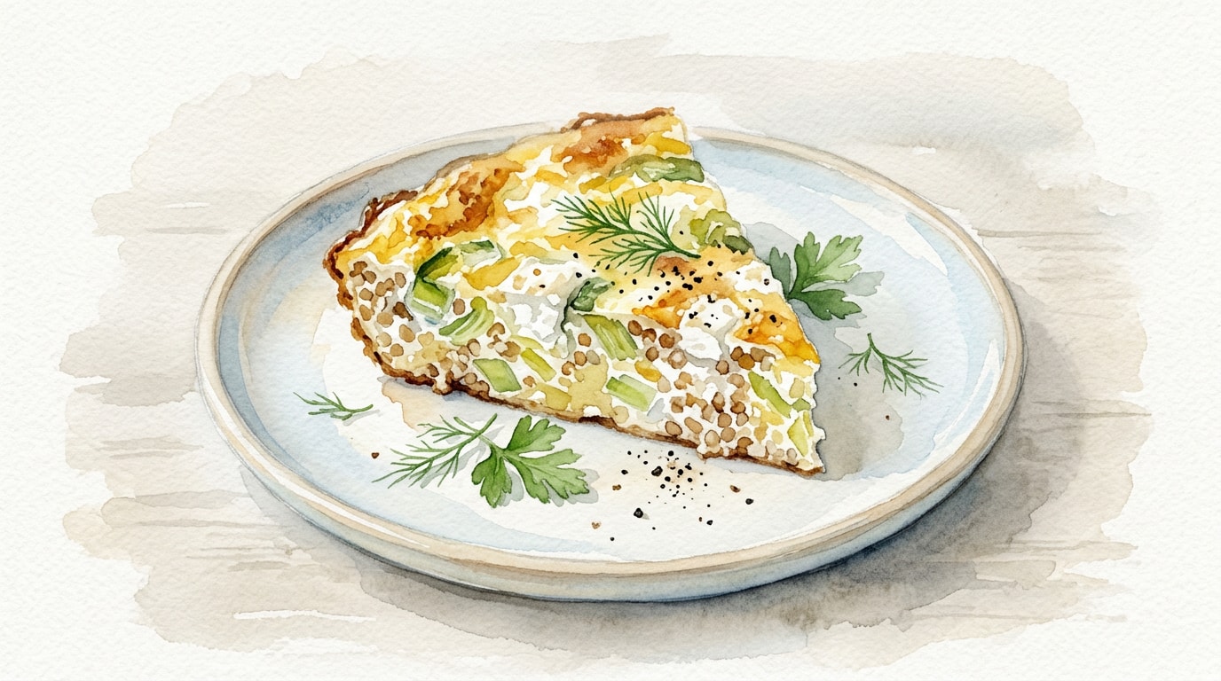 Pour the egg and kasha mixture evenly over the sauteed leeks and spinach in the skillet. Allow it to cook undisturbed on the stove over low heat for 2 to 3 minutes, just until the edges begin to set.