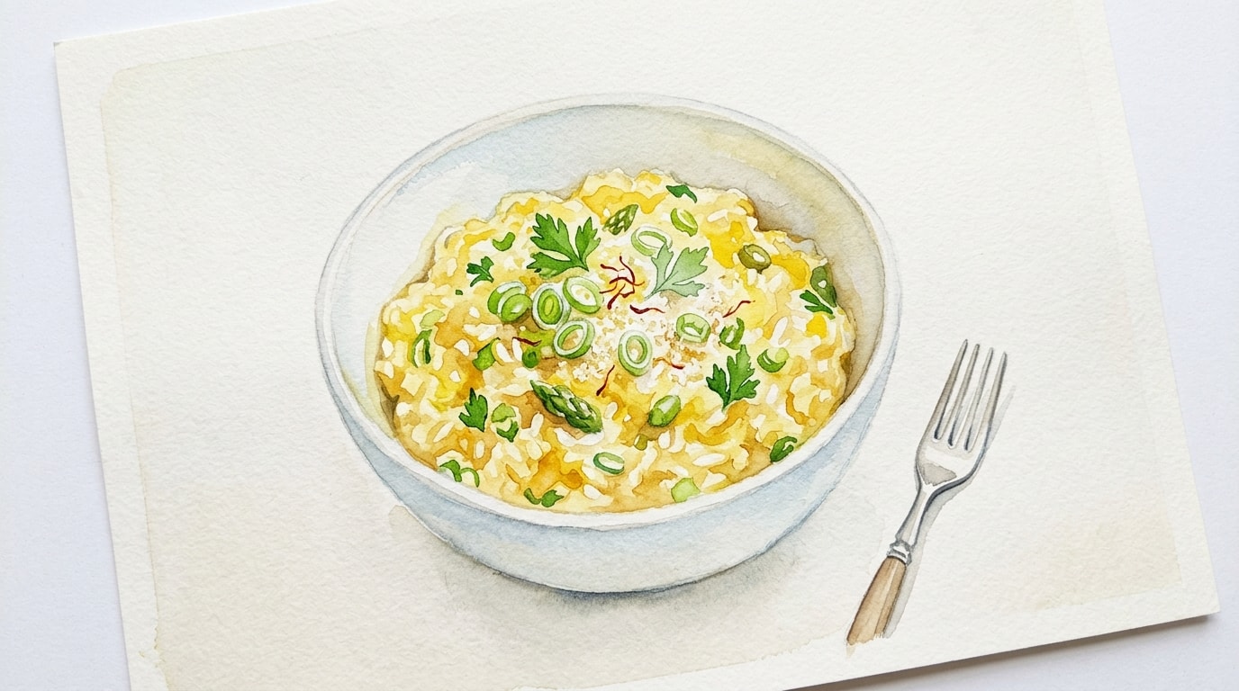 In the last 5 minutes of cooking, stir the infused saffron and its soaking liquid into the risotto, watching the rice turn a brilliant golden yellow.