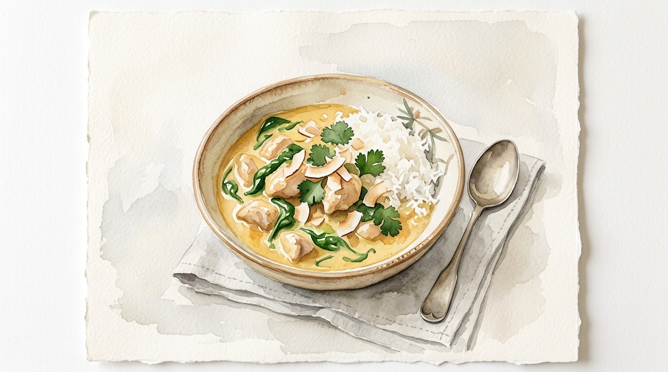 Pour in the coconut milk and low FODMAP chicken broth. Season with salt. Bring the mixture to a gentle boil, then reduce the heat to low.