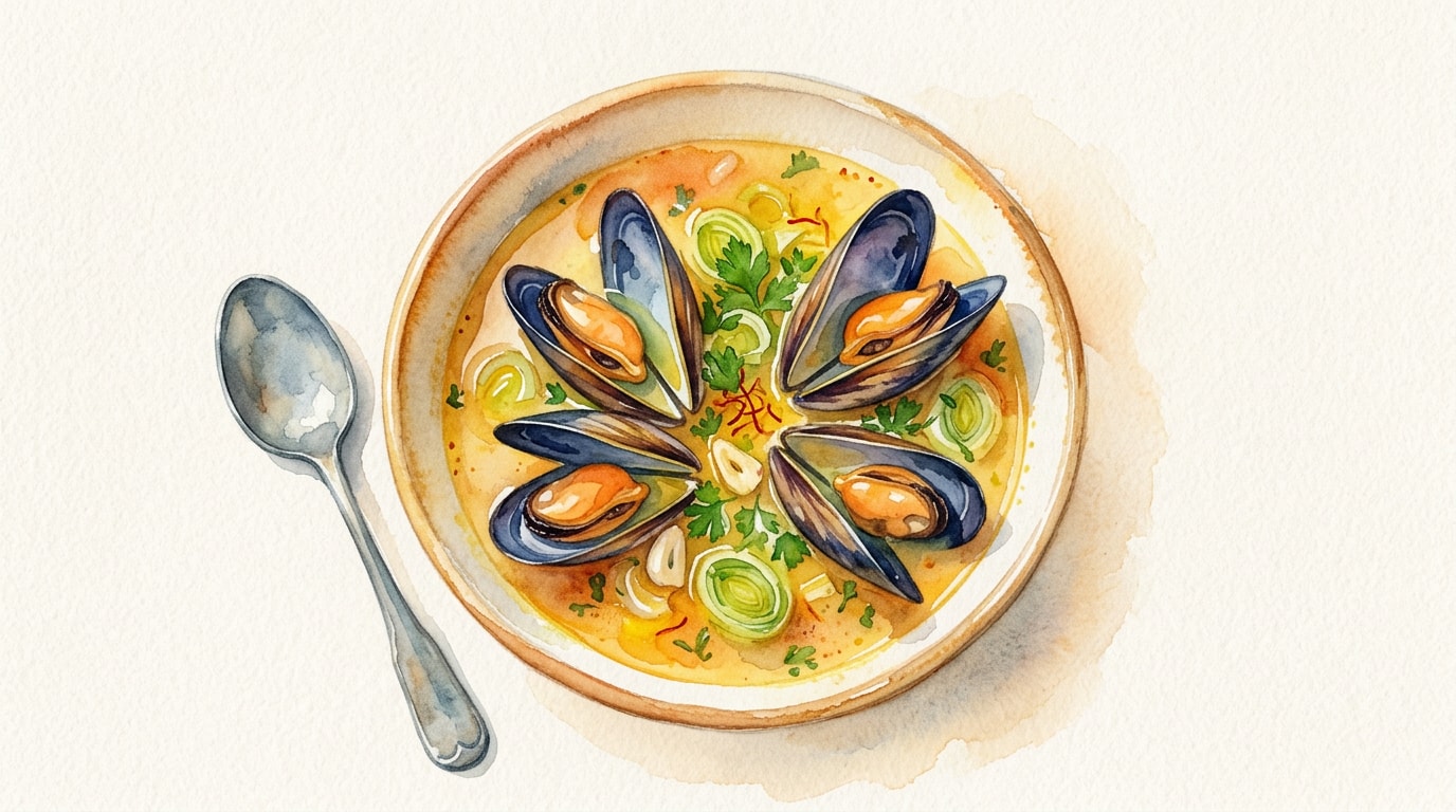Reheating: Reheat the broth on the stovetop until simmering, then gently add mussels just until warmed through to prevent overcooking.