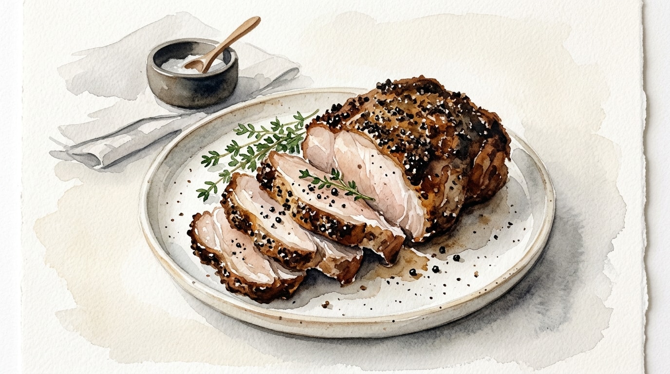 - Coarsely crushing your own black peppercorns is crucial here; pre-ground pepper will be entirely overwhelming and lacks the fruity, floral volatile oils needed to balance the heavy pork.