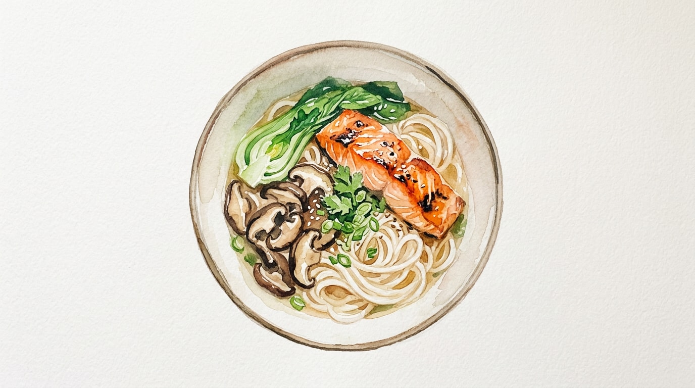 Reheating: Reheat broth on the stove until simmering. Gently warm salmon separately in a pan or microwave. Pour hot broth over cold noodles to warm them through.