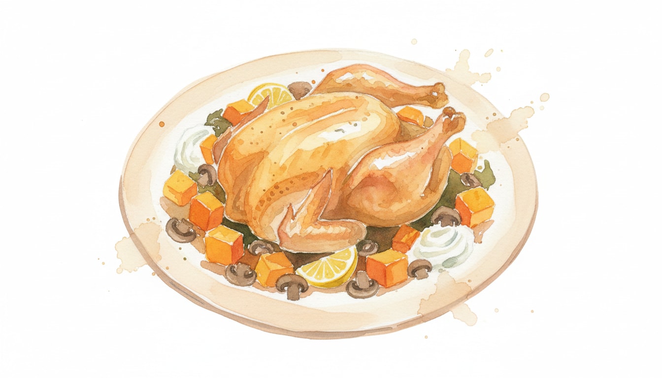 Reheating: Reheat chicken and vegetables in an oven at 180°C/350°F for 10-15 minutes to recrisp skin. Do not heat the crème fraîche sauce.