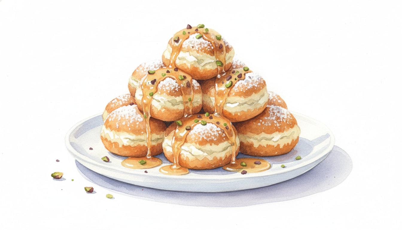 - Use a thermometer for the oil. Choux is sensitive; too cool and it becomes greasy, too hot and it burns before puffing.