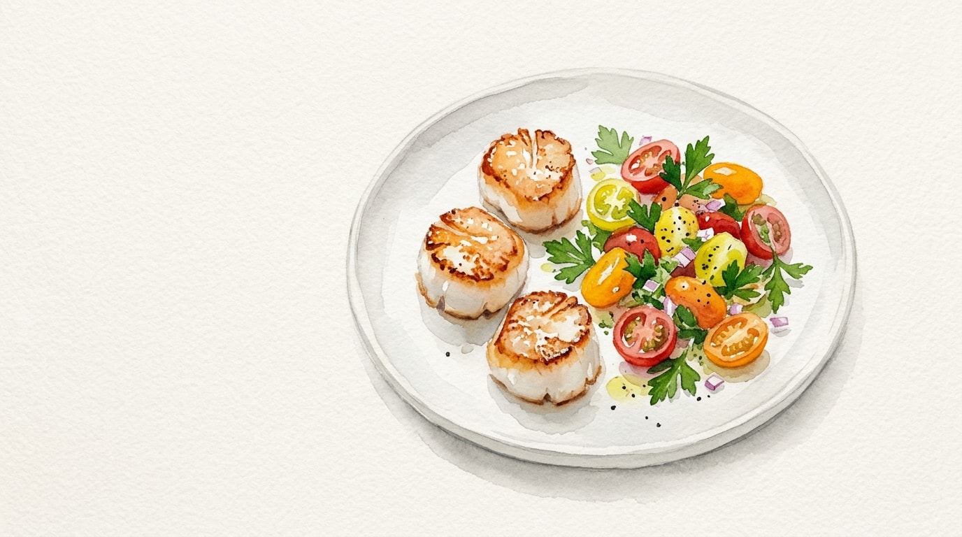 Thoroughly pat the sea scallops dry using paper towels. Moisture is the enemy of a good sear. Wash hands and surfaces thoroughly after handling raw shellfish to prevent cross-contamination.