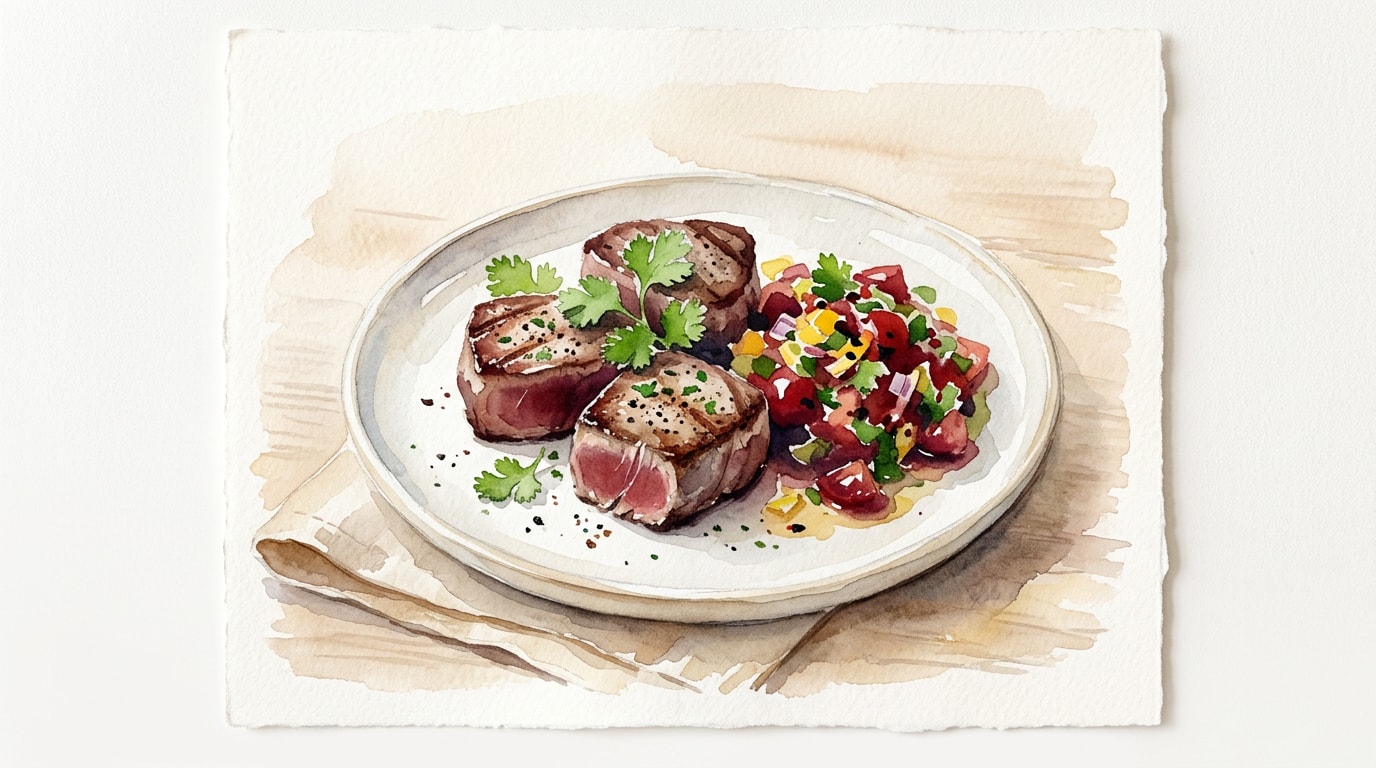 - To achieve a restaurant-quality presentation, slice the rested tuna medallions on a slight bias to expose the beautiful ruby-red interior before topping with the vibrant salsa.