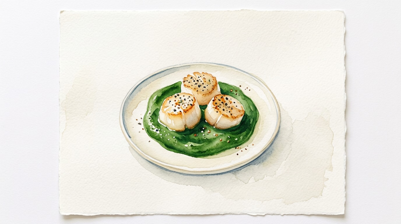 Carefully place the scallops in the pan, ensuring they do not touch. Sear undisturbed for 1.5 to 2 minutes until a dark golden-brown crust forms. Flip and sear the other side for 1 minute, aiming for an internal temperature of 52°C/125°F for a perfect tender center.