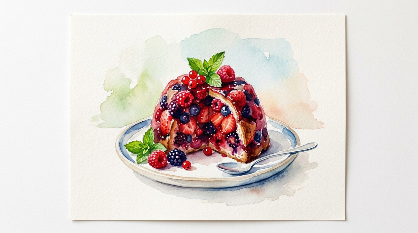 Cut a circle of bread to fit the bottom of your 1-liter pudding basin, then cut the remaining slices into wide wedges or thick rectangles. Dip one side of each bread piece into the reserved berry juice and line the inside of the basin, overlapping the edges slightly and pressing down to seal any gaps.
