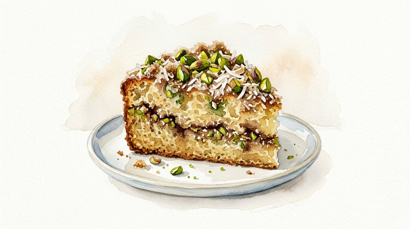 - Cardamom acts as a flavor bridge between the nutty pistachios and the sweet coconut, elevating the entire profile from a standard coffee cake to a sophisticated bakery-style treat.