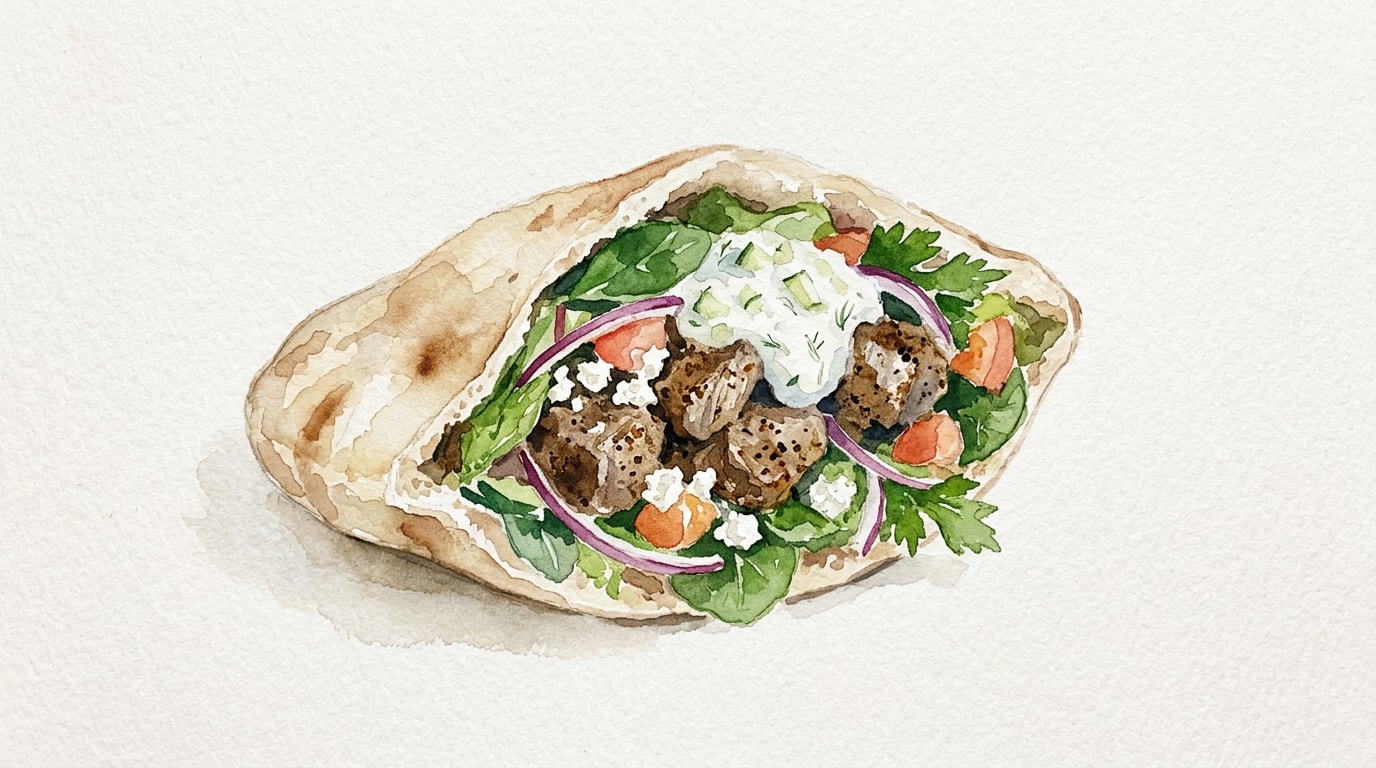 Reheating: Reheat lamb in a skillet over medium heat or microwave until steaming. Warm pitas separately. Do not heat yogurt sauce or fresh vegetables.