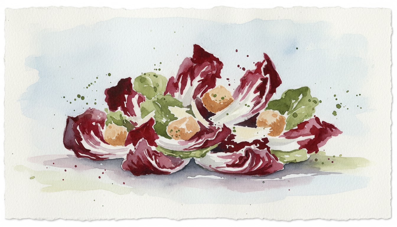 Add the radicchio leaves to the bowl with the dressing. Toss gently but thoroughly until every leaf is coated.
